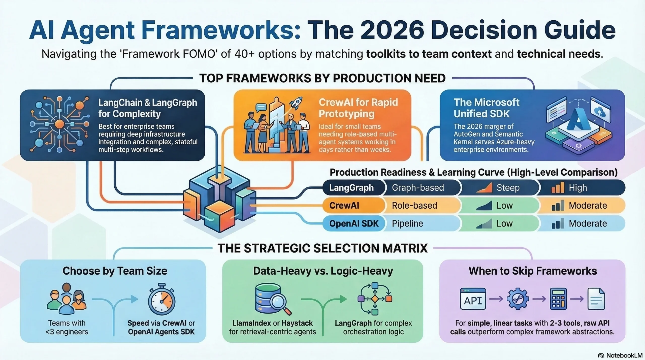 If your team has fewer than 3 engineers working on agents: Start with CrewAI or OpenAI Agents SDK. You need speed over flexibility. You can migrate later when complexity demands it.